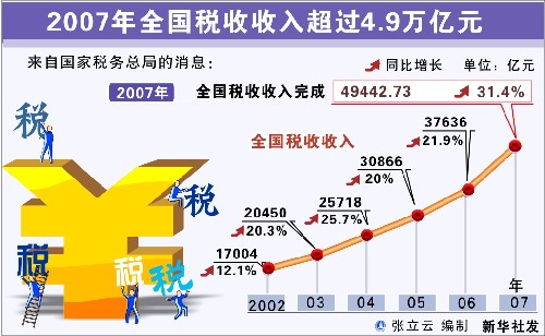 图表:2007年全国税收收入超过4.9万亿元 新华社发