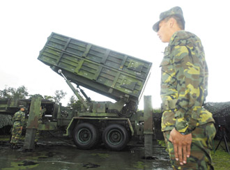 中国台湾网1月16日消息 台当局“国防部”昨天向岛内外媒体开放位于台北县三芝的天弓导弹阵地,天弓导弹由台“中科院”研制,据称,新一代的天弓二型导弹“与美制爱国者导弹性能相近”。此外,台军方昨天还要求参访记者签下“保密切结书”,并严限部分区域禁止摄影,作法之严,近年罕见。