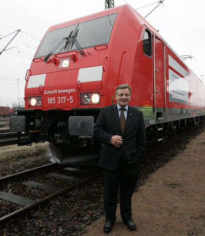 德国铁路集团总裁梅多恩欢迎来自北京的列车。路透社