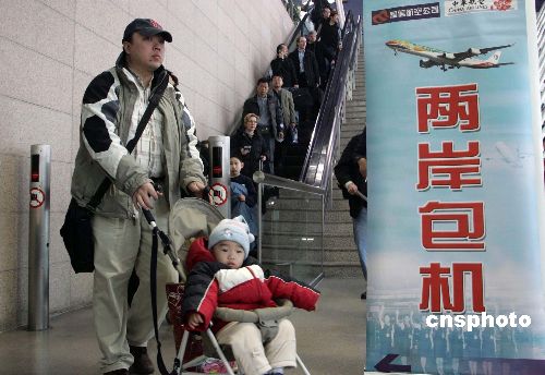 二日上午由北京起飞的海南航空HU七九八七航班,中午飞抵桃园机场。搭乘这架波音七三七--八00型客机的一百多名台商和眷属走出机场时表示,对于能够按时回家过年感到十分开心。
