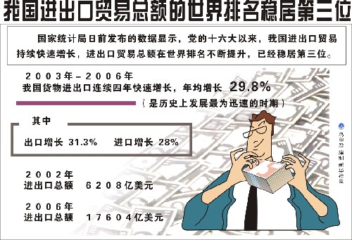 进出口贸易强劲攀升 世界排名连升三位跃居第三