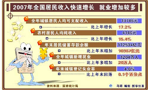 图表:2007年全国居民收入快速增长 就业增加较多 新华社发