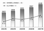 城乡居民收入快速增长。5年来,我国农村居民人均纯收入由2003年的2622元增加到2007年的4140元,城镇居民人均可支配收入由8472元增加到13786元。在城镇居民各项收入中,经营、财产性收入比重有所上升,成为城镇居民收入增长的亮点,表明我国居民增收的可持续性不断增强。