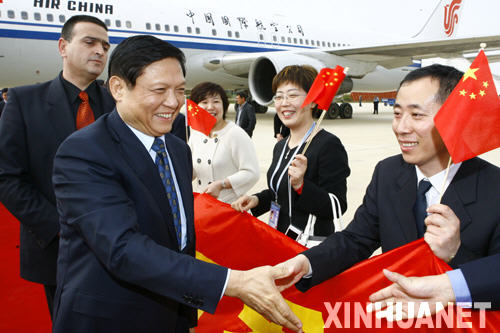 3月23日,应希腊奥委会邀请,中共中央政治局委员、中共北京市委书记、北京奥组委主席刘淇率北京奥运圣火取火代表团抵达希腊,出席第29届夏季奥运会圣火取火仪式。 新华社记者 李岳 摄