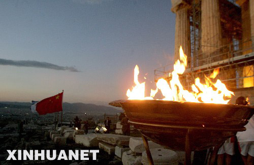 3月29日,北京奥运会圣火传递到雅典卫城。 新华社发