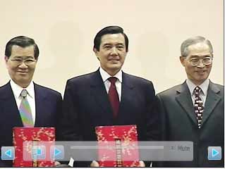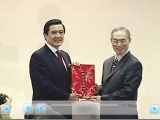 马英九当选台湾地区领导人,“中选会”颁发证书