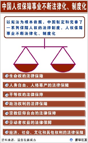 声明说,尊重和保障人权是中国政府和中国人民矢志不渝追求的崇高目标和坚定奉行的宪法原则。“国家尊重和保障人权”于2004年写入了宪法,已成为以人为本的科学发展观和构建社会主义和谐社会的重要组成部分,成为国家建设和社会发展的重要主题。