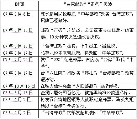 报道称,有“台邮”干部指出,重新挂回“中华邮政”招牌技术上根本不成问题,只是多花一点人力作业时间,也不像当初陈水扁当局执意要改“台湾邮政”时那样,得多花7000多万元新台币重做新招牌、刻印章。