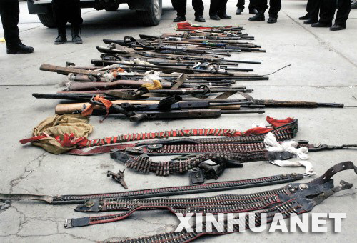 据介绍,3月28日,根据群众举报,公安机关在格尔登寺查获了一批武器弹药,其中包括小口径步枪16支、各种火药枪14支、子弹498发、火药4公斤、管制刀具33件,查获了数以千计的“藏独”宣传品,以及短信群发器和淫秽录像光碟等。