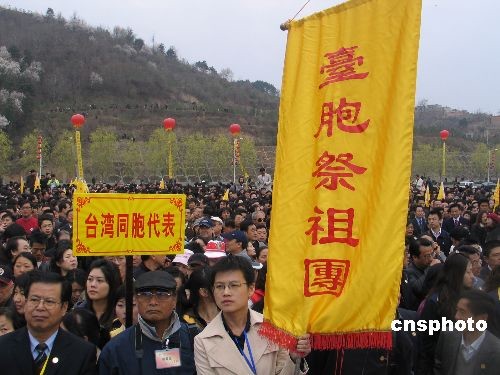 须发斑白的台湾中国统一联盟前主席陈钦铭是第三次来黄帝陵,此番偕夫人同行。他笑称,一九八九年第一次来陕西祭拜黄帝陵,留下的是颓败荒凉的印象。如今,祭祖的盛况一年比一年好,中华民族伟大的始祖对海内外华人起到了凝聚的作用。二00六年,原台湾光复致敬团后人谒黄帝陵一行由台湾中国统一联盟四处奔走,全力促成。沧桑一甲子、终于得梦圆,充分证明了黄帝陵在人们心中的地位。