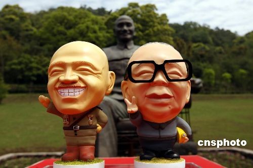 4月5日,“两蒋”Q版公仔亮相慈湖旅游季系列活动开幕仪式。新版的两蒋公仔,取名完全颠覆那个严肃的年代,叫做蒋大头跟蒋小国,Q版的存钱筒,强调纯手工,有大小两种尺寸,在慈湖两蒋游客中心展示后众多游客表示要预定。 中新社发 杜洋 摄
