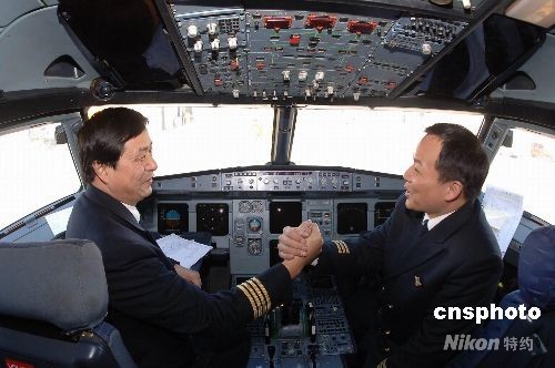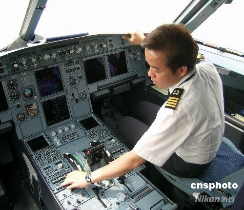从2005年12月以来,四川航空公司分两批先后引进20名台湾飞行员,图为台湾飞行员王运德在工作。这些台湾飞行员以全面、过硬的飞行技术,翱翔于祖国大陆蓝天,为中外旅客提供优质服务。 中新社发 川航 摄
