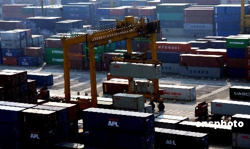 资料图:3月24日,对台试点直航口岸重要作业区福州港青州港区集装箱码头呈现繁忙景象。福州港作为原国家交通部批准的两个对台试点直航口岸之一,自1997年4月19日福建省外贸船务公司的“华荣”号装载37个标箱驶向台湾高雄,首次实现两岸试点直航以来,截至2008年2月,对台试点直航船舶已顺利往返共计8210个航次,累计运载集装箱214万多标箱。 中新社发 刘可耕 摄