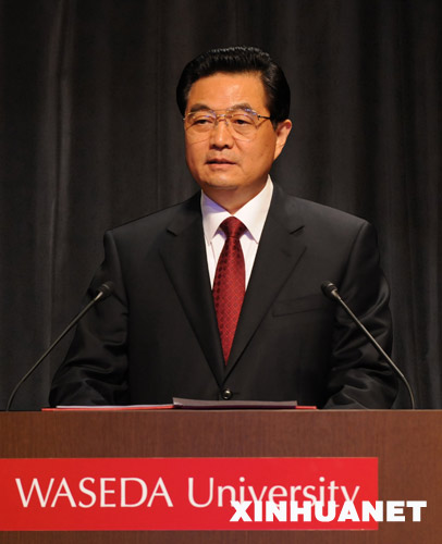 5月8日,国家主席胡锦涛在日本东京的早稻田大学发表重要演讲。 新华社记者李学仁摄
