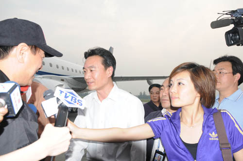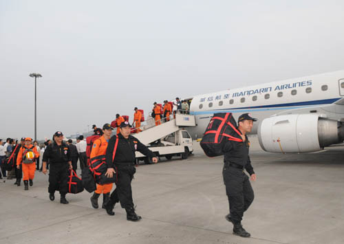 国台办和四川省台办领导到机场迎接台湾救援队。