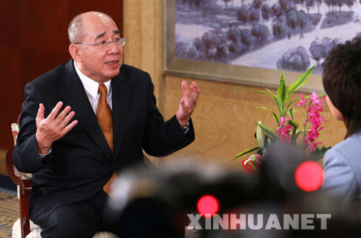 5月30日,中国国民党主席吴伯雄在上海虹桥迎宾馆接受大陆媒体集体采访。新华社记者 庞兴雷 摄