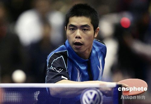 5月14日,中国乒乓球公开赛在长春拉开战幕,台北名将庄智渊在男团预赛中以3比0战胜老将王励勤,为中华台北队取得一分。 中新社发 杜洋 摄