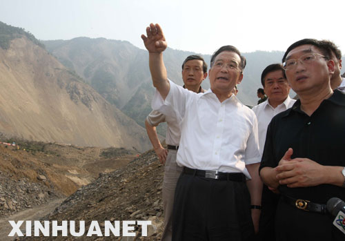 温家宝还来到导流明渠的出水口察看。风很大,不时传来碎石从山上滚落的声音……