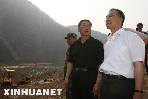 过去10多天里,威胁上百万人安全的唐家山堰塞湖,不仅全国关注,更是牵挂着中共中央政治局常委、国务院总理、国务院抗震救灾总指挥部总指挥温家宝的心。6月5日下午,温家宝再次来到这里察看情况。