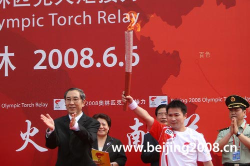 今日(6日)9时,北京奥运火炬接力桂林站传递正式开始,1996年亚特兰大奥运会59公斤级举重冠军唐灵生成为第一名火炬手,领跑广西省境内的传递活动。
