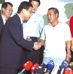 但双方昨天都没有触碰赔偿细节,在场的台北县长周锡玮、国民党籍“立委”李庆华表示,赔偿事宜将通过外事途径协商。