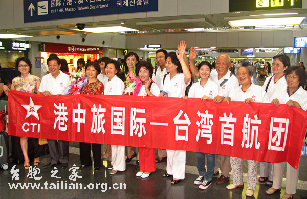 北京市台联副会长叶芳、郑大等人专门到机场为她们送行。当大家拉开写有“常回家看看—欢送在京台胞随首发团赴台旅游”的横幅合影留念时,立刻引来了众多在场的记者和游客们的镜头和关注。
