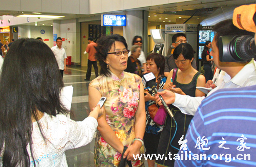 台湾雾峰林家后代、北京市台联理事林力女士与在京台籍同胞肖萍女士今天早上跟随港中旅的赴台旅游首发团踏上了回家的路。 赵笑虹摄