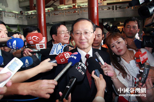 邵琪伟在台北孙中山纪念馆内受到两岸媒体“围攻”(摄影:李徽)