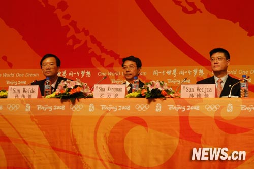 北京奥运会主新闻中心将平均每天举行30多场新闻发布会,接待两万多名奥运会注册记者,在今天举行的首次新闻发布会上,北京奥组委相关负责人介绍了北京奥运会媒体运行和服务方面的情况,并回答了记者的提问。