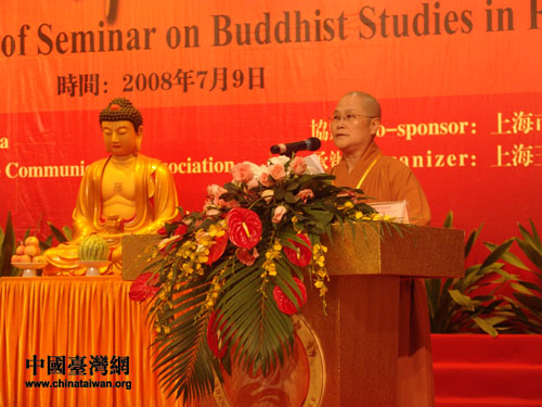 中国台湾网7月10日上海消息 今天上午,在上海玉佛禅寺“2008佛教外语交流会”的会场上,来自台湾佛光山的妙光法师以其流利漂亮的英文演讲博得了满场掌声。此次交流会有来自台湾地区佛教界二十余名外语人才代表莅会,并以英语、日语等多种语言进行演讲。对于佛教交流在两岸交流中扮演的重要角色,以及中国佛教文化的对外传播对于弘扬中华文化的意义,这些来自台湾的法师也向记者表达了自己的独特体悟。