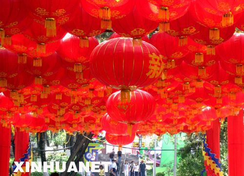7月15日,西宁市民在观赏“灯笼走廊”。近日,青海西宁市人民公园举办大型灯展,迎接北京奥运会。 新华社记者 侯德强 摄