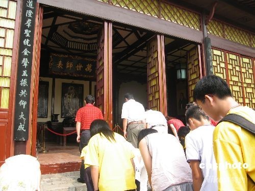 7月17日,千年学府岳麓书院内文庙前,来自海峡两岸的四十多位家长、孩子共同向至贤先师孔子像行鞠躬礼。据悉,这些家庭都是“亲子读经班”的成员,为学习和传统中华传统文化,家长利用业余时间带着孩子一起诵读古文经典,促进沟通。 中新社发 刘双双 摄