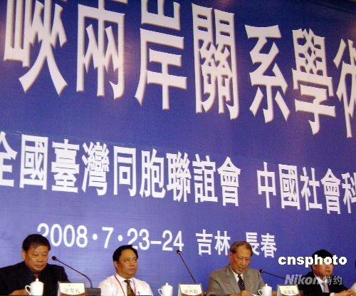 7月23日,第十七届海峡两岸关系学术研讨会在长春市召开,中国大陆、台港澳地区及海外的近百位专家学者与会。图为前全国人大常委会副委员长、全国台湾研究会会长成思危(右二)、国务院台办副主任孙亚夫(左一)、全国台联会长梁国扬(左二)、社科院台研所所长余克礼(左一)等出席会议。 中新社发 刘舒凌 摄