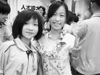 来自台北县的蔡欣雅和武汉的张秋琪也在人群当中,拉着手甜甜地笑着。相处一天,同为13岁的她们俩早就熟悉了。从早晨8时互相交换心形名字牌,到晚上6时左右一起回来参加联欢晚会,她们已经在一起相处了大约10个小时,大有相见恨晚之意。