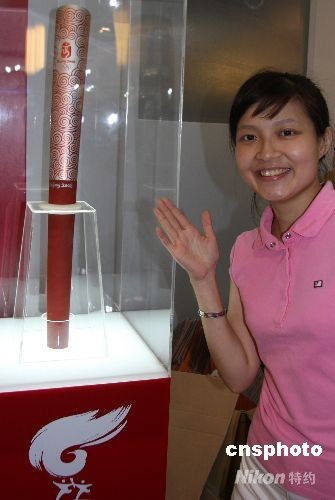 8月2日,由联想集团设计的北京奥运会“祥云”火炬,在台北电脑应用展联想摊位现身。据介绍,这是“祥云”火炬真品首度来台,只展出一天。 中新社发 董会峰 摄