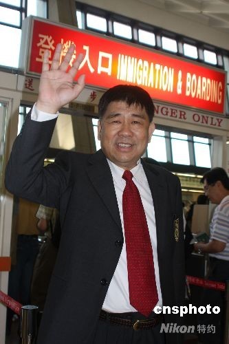 8月3日7时55分,由总领队蔡赐爵等率领的中华台北代表队一行50人,搭乘华航CI603班机经香港转机前往北京,征战2008年北京奥运会。图为蔡赐爵在桃园机场登机入口处,他在行前向中新社记者表示,中华台北队此次的目标是,最起码要保持雅典奥运的2金2银1铜。 中新社发 董会峰 摄