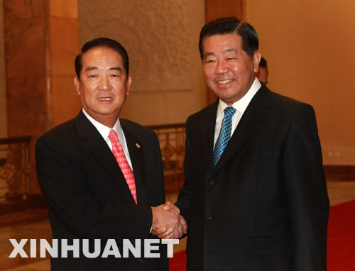 新华网北京8月11日电 中共中央政治局常委、全国政协主席贾庆林11日在人民大会堂会见了亲民党主席宋楚瑜一行。