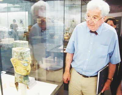 在“竞技——古代奥林匹克文物展”展厅,记者偶遇英国著名雕塑家、北京奥林匹克公园奥运雕塑“从雅典到北京”的设计者司徒安,他是听说首都博物馆有三星堆和红山遗址文物展览,特地赶来参观的。他表示,北京奥运会赛场内外洋溢着中国文化。