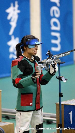 2008年8月14日 (北京奥运)(5)射击——中国选手杜丽获女子50米步枪三种姿势金牌 8月14日,中国选手杜丽在比赛中打完最后一枪。当日,在北京奥运会射击女子50米步枪三种姿势决赛中,中国选手杜丽以690.3环的总成绩获得冠军。 新华社记者 鲍菲菲 摄