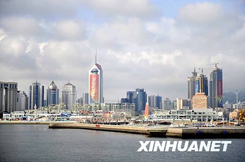 8月10日,青岛奥帆中心在云彩的映照下显得格外美丽。新华社记者朱峥摄