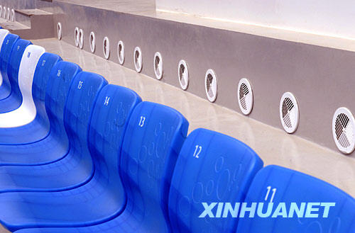 这是“水立方”内观众座椅附近设计巧妙的空调通气孔(5月16日摄)。 新华社记者王颂摄