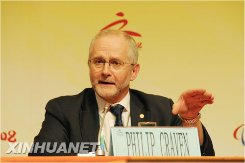 9月6日上午,北京残奥会主新闻中心举行北京奥组委、国际残奥委会联合例行新闻发布会。图为国际残奥委会主席菲利普-克雷文在发布会上回答记者提问。(新华网 展鹏摄)