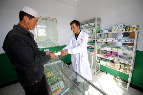 村民在宁夏海原县西安镇白吉村村卫生室取药(9月5日摄)。 2005年,宁夏全面启动农村医疗改革。短短几年,随着新型农村合作医疗覆盖所有县市,村卫生室升级,“零利润”药品进乡村,村医领“月薪”等一系列民生措施的实施,宁夏农民迎来医疗保障的新时代。 新华社记者 刘泉龙 摄