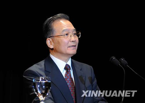 9月23日,中国国务院总理温家宝在纽约出席美国友好团体欢迎午宴,并就中美关系发表演讲。新华社记者刘建生摄
