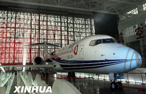 这架ARJ21-700型飞机于去年12月在上海飞机制造厂总装下线,成为中国跻身世界民用客机行列的标志。