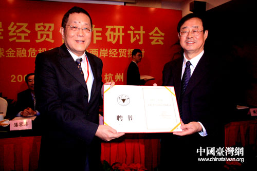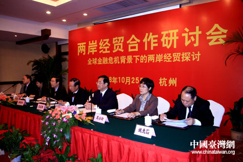 中国台湾网10月25日杭州消息 由浙江大学台湾研究所和浙江省海峡两岸经济文化交流发展协会共同举办的“两岸经贸合作研讨会”10月25日在杭州召开。来自两岸三地50多位知名专家学者出席了会议,针对全球金融风暴对两岸经贸交流合作影响以及两岸共同应对金融风暴的措施进行深入探讨。