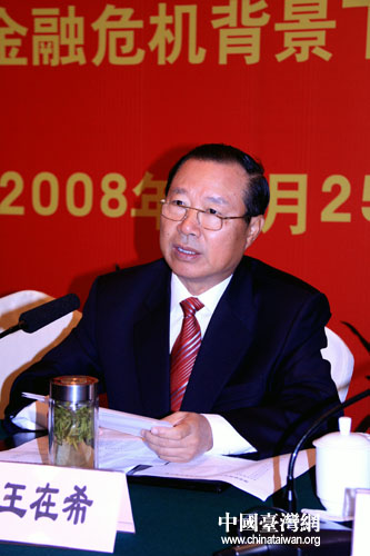 王在希还表示,最近出现的全球性的金融风暴,对两岸经贸合作发展既有挑战,也是一个机遇。只要两岸三地同胞携起手来,优势互补,共同应对,一定能够克服困难,共创双赢,把两岸经贸合作交流提升到一个新的水平,造福两岸人民。