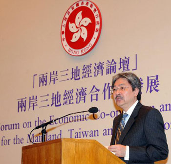 曾俊华在该论坛上致欢迎辞时说:“香港在内地跟台湾的经贸交流上,担当重要的角色。香港是往来内地和台湾旅客的主要转接地点,也是两地货物贸易的主要转口港。两岸的经贸关系过去几年逐渐改善,经过香港转口的两岸贸易在2002到2007年间仍然以年均15%的速度增长,占香港整体对外贸易的比例也从2002年的5.6%,上升到2007年的6.5%。”