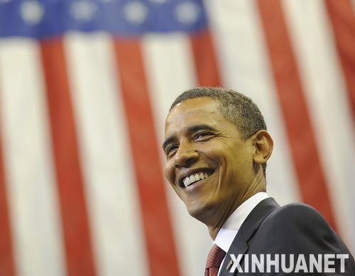 民主党总统候选人奥巴马在4日举行的美国大选中获得超过270张选举人票,当选总统已成定局。这是奥巴马2008年11月3日的资料照片。新华社发