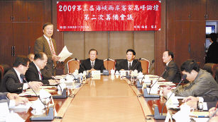 昨晚,第三届海峡两岸客家高峰论坛第二次筹备会议在闽西宾馆举行。市政协主席林仁芳、中华海峡两岸文经交流协会理事长饶颖奇先生,北京联合大学的专家学者和台湾、厦门、龙岩有关方面的负责人参加了会议。按照第二届海峡两岸客家高峰论坛闭会期间的决议,第三届海峡两岸客家高峰论坛将于明年3月20日至23日在台湾举行,台湾方面报告了相关议程。(作者:李永安 钟德彪 摄)